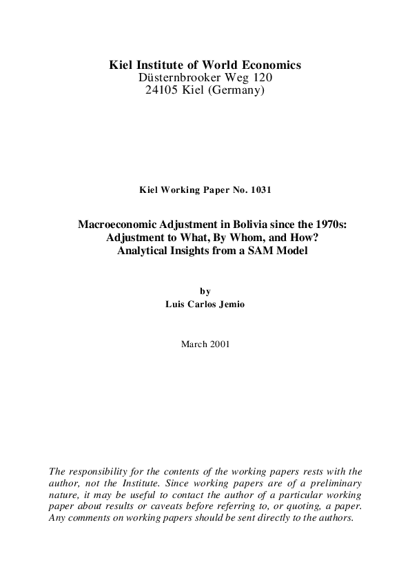 Macroeconomic Adjustment in Bolivia since the 1970s: Adjustment to What, By Whom, and How? Analytical Insights from a SAM Model