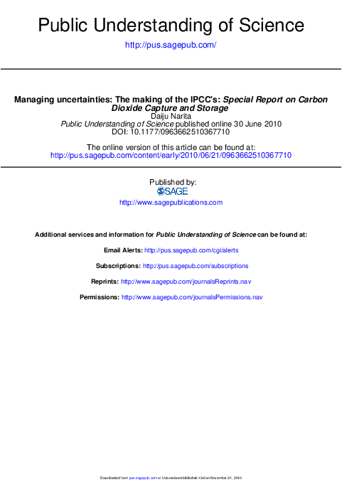 Managing Uncertainties: The Making of IPCC’s - Special Report on Carbon Dioxide and Capture and Storage