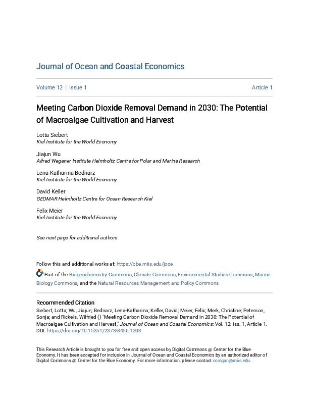 Meeting Carbon Dioxide Removal Demand in 2030: The Potential of Macroalgae Cultivation and Harvest