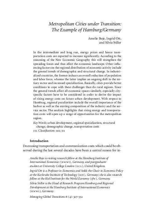 Metropolitan Cities under Transition: The Example of Hamburg/Germany