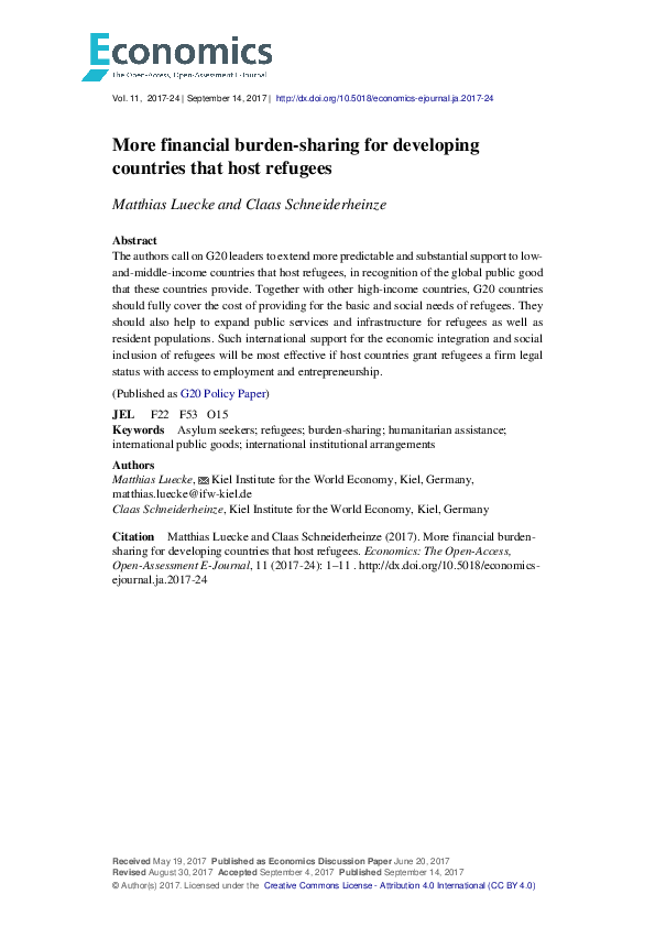 More financial burden-sharing for developing countries that host refugees