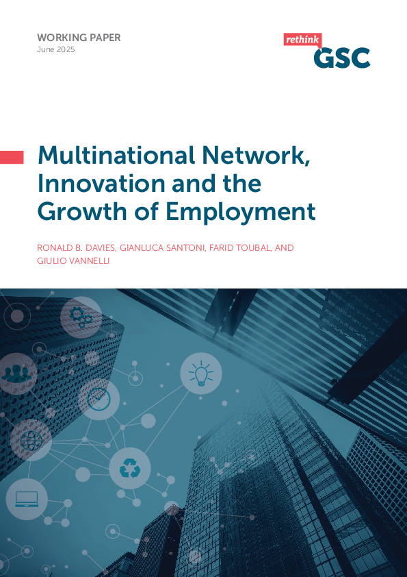 There is a long-standing recognition that innovating firms often have higher employment growth. More recently, there is increasing understanding that innovation is concentrated among a small number of generally large firms. We contribute to this debate by showing that the innovation-employment link for a firm is dependent on its multinational status. While we find that more innovative firms are also faster growing ones – even after accounting for size – there is an even greater effect from innovation for multinationals. While we do find evidence suggesting that such firms benefit from innovation done by other affiliates of the same parent, we nonetheless find that they benefit more from their own innovation as well. Thus, this points to important features of multinationals such as integrated global supply chains that are key to understanding the relationship between innovation and employment.