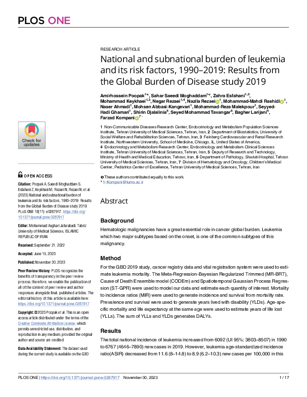 This study provided a better understanding of leukemia burden and to reduce controversies of leukemia across Iran. The leukemia status alteration of the country, is trackable.