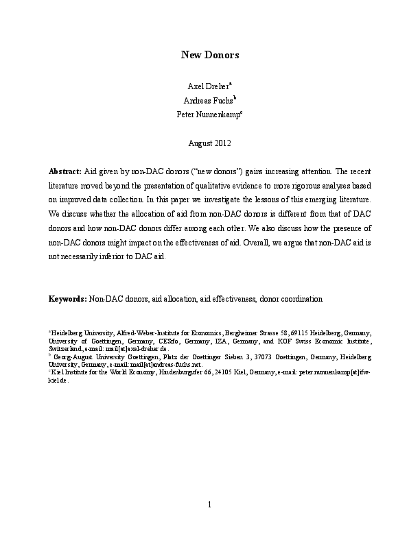 Aid given by non-DAC donors (“new donors”) gains increasing attention. The recent literature moved beyond the presentation of qualitative evidence to more rigorous analyses based on improved data collection. In this paper we investigate the lessons of this emerging literature. We discuss whether the allocation of aid from non-DAC donors is different from that of DAC donors and how non-DAC donors differ among each other. We also discuss how the presence of non-DAC donors might impact on the effectiveness of aid. Overall, we argue that non-DAC aid is not necessarily inferior to DAC aid.
