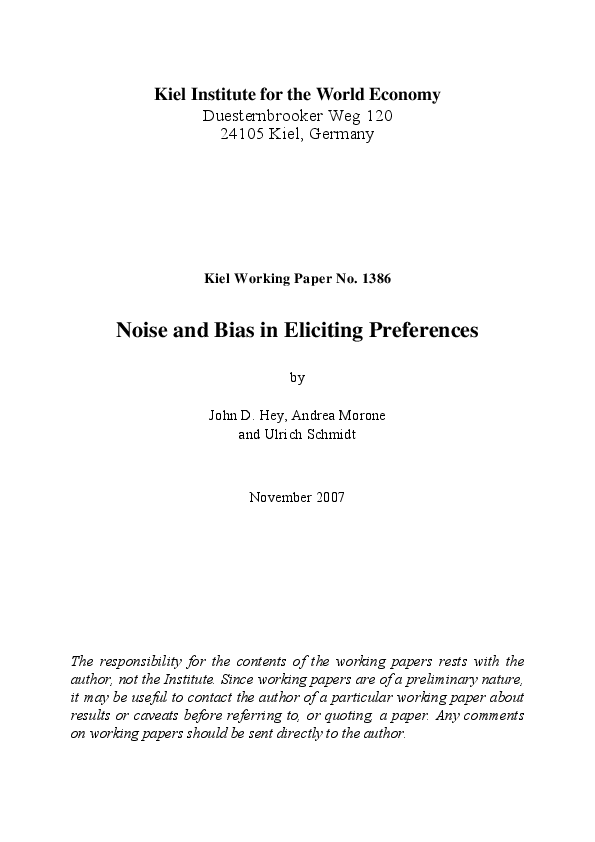 differ in terms of the bias in the elicitation; it is rather less well-known that different methods differ in terms of their noisiness. The optimal trade-off depends upon the relative magnitudes of these two effects. We examine four different elicitation mechanisms (pairwise choice, willingness-to-pay, willingness-to-accept, and certainty equivalents) and estimate both effects. Our results suggest that economists might be better advised to use what appears to be a relatively inefficient elicitation