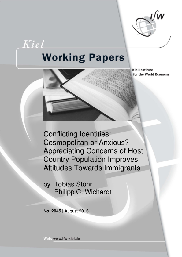 Cosmopolitan or anxious? In order to test the influence of conflicting aspects of identity, German respondents were asked about their attitude towards a Syrian refugee the description of whom was varied in various domains (N=662). Once the refugee is described as being aware of as well as open towards concerns in the German population -- regarding cultural change, arising costs and increasing violence -- reported levels of sympathy and trust increase substantially, especially for risk averse people. Additional data from a second questionnaire (N=118) show that a German person expressing such concerns is perceived as less cosmopolitan and more likely to vote for the emergent populist right-wing. Combining these findings, we argue that acknowledging concerns of the host population relieves the tension between the anxious and cosmopolitan part of peoples' identities and, therefore, allows them to respond more openly since an aspect of identity that is acknowledged by context (expressing anxieties) has less influence on actual behavior (expressing sympathy). Apart from that, we find that personal experience and the higher willingness to take risks are important for the individual willingness to interact. Our findings highlight the importance of context, identity and individual characteristics for host populations' attitudes towards of refugees.