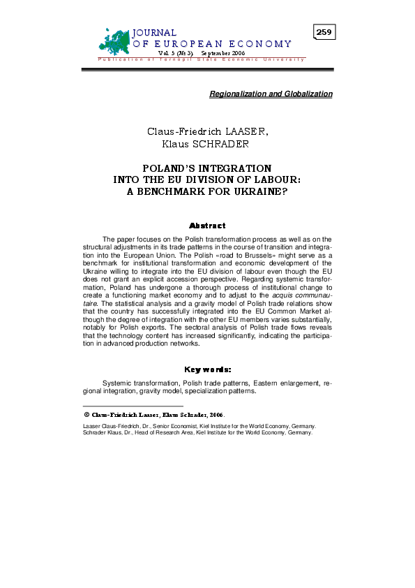 Poland’s Integration into the EU Division of Labour: A Benchmark for the Ukraine?