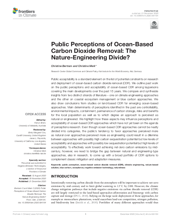 Public Perceptions of Ocean-Based Carbon Dioxide Removal: The Nature-Engineering Divide?