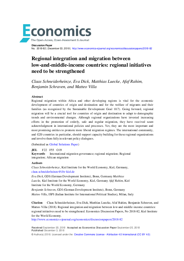 Regional integration and migration between low-and-middle-income countries: regional initiatives need to be strengthened
