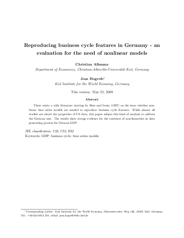 Reproducing business cycle features in Germany - an evaluation for the need of nonlinear models