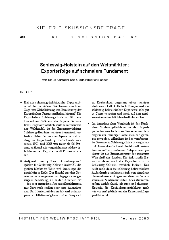 Trotz des intensiven internationalen Wettbewerbs hat die schleswig-holsteinische Wirtschaft wieder Tritt gefasst, bei Wachstum und Beschäftigung sind die positiven Vorzeichen unübersehbar. Dieser Aufschwung ist den wettbewerbsstarken Industrieunternehmen im Lande zu verdanken, die auf den Wachstumsmärkten in Europa und in Übersee gut positioniert sind. Allerdings wurden in den letzten 15 Jahren viele hochwertige Industriearbeitsplätze abgebaut, während der Anteil gering bezahlter Dienstleistungsbeschäftigung kontinuierlich gewachsen ist. Wenn die Wohlstandsentwicklung in Schleswig-Holstein langfristig positiv verlaufen soll, muss die anspruchsvolle und gut bezahlte Industriebeschäftigung im Lande gehalten werden. Es bedarf zudem eines größeren Anteils hochwertiger Dienstleistungsarbeitsplätze, um Schleswig-Holstein langfristig zu einem prosperierenden Hightech- und Wissenschaftsstandort zu entwickeln.