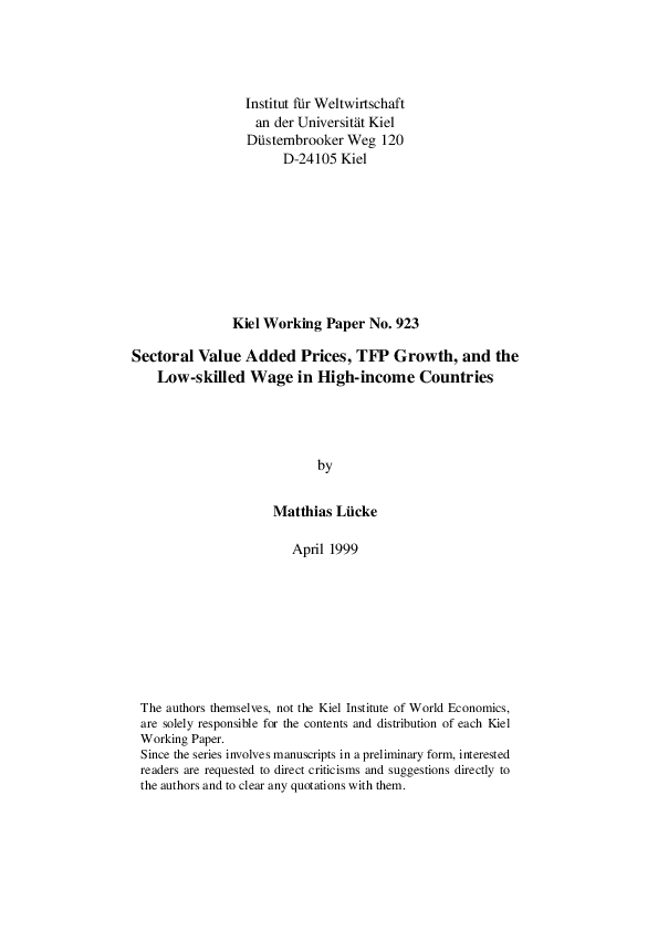 Sectoral Value Added Prices, TFP Growth, and the Low-Skilled Wage in High-Income Countries