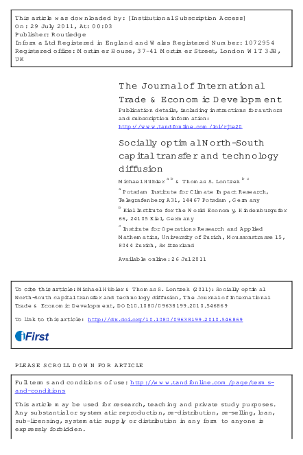 We study North–South capital transfer and the diffusion of embodied technologies within a framework of intertemporal global welfare maximization. We show saddle path stability and characterize the steady state. We then examine the transition path by running numerical experiments based on realistic data. As a result, technology diffusion will succeed if the absorptive capacity is sufficient which requires sufficient investment. While a large share of capital is allocated to the South in early periods, this share declines in later periods when the South has caught up in terms of technologies.