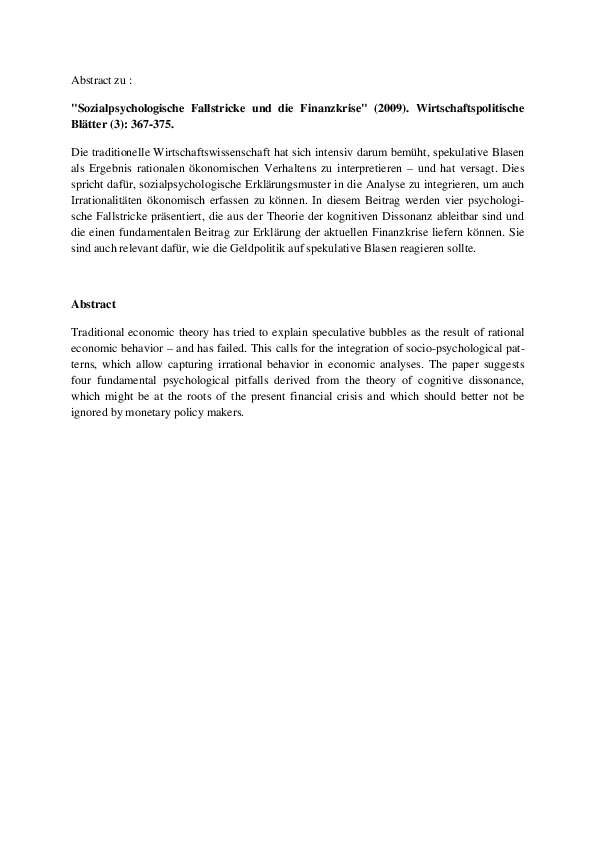 Sozialpsychologische Fallstricke und die Finanzkrise