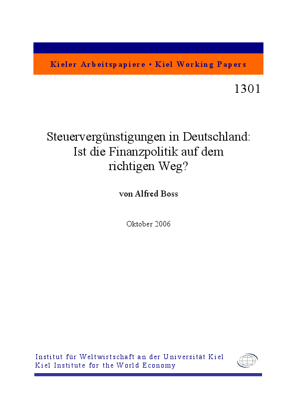 Steuervergünstigungen werden in Deutschland für eine Vielzahl von Zwecken gewährt. Sie wurden mit den finanzpolitischen Beschlüssen vom Dezember 2003 teilweise eingeschränkt. Nach der Bundestagswahl 2005 wurden etliche Steuervergünstigungen nochmals gekürzt oder abgeschafft; es wurden aber auch neue Vergünstigungen geschaffen. Der Beitrag zeigt die Entwicklung der einzelnen Steuervergünstigungen im Zeitraum 2003 bis 2006 auf. Zudem wird dargestellt, welche Änderungen im Zeitraum 2007 bis 2010 absehbar sind; bleibt es bei dem Steuerrecht, wie es derzeit kodifiziert ist, so werden die Mindereinnahmen infolge von Steuervergünstigungen bis zum Jahr 2010 deutlich abnehmen.