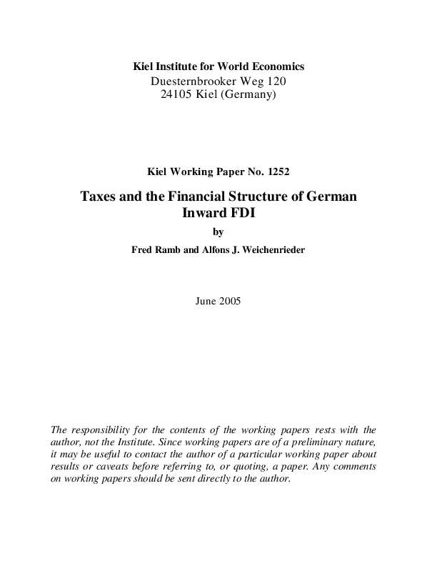 The paper analyses the financial structure of German inward FDI. From a tax perspective, intra-company loans granted by the parent should be all the more strongly preferred over equity the lower the tax rate of the parent and the higher the tax rate of th
