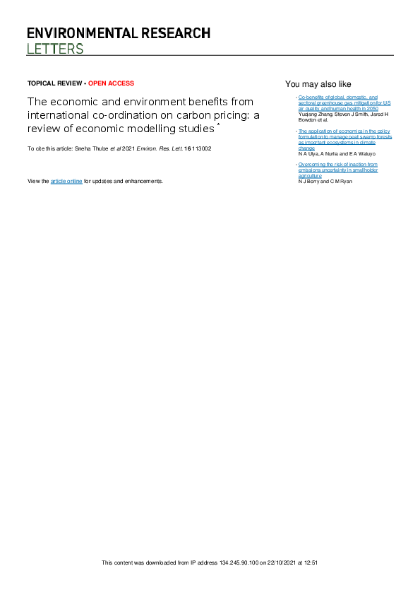 The economic and environmental benefits from international co-ordination on carbon pricing: A review of economic modelling studies