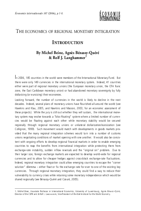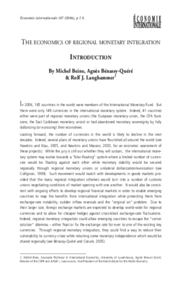 The Economics of Regional Monetary Integration:Introduction (coauthored with Bénassy-Quéré and Michel Beine)