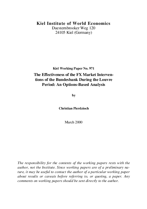 The effectiveness of the foreign exchange market interventions conducted by the Deutsche Bundesbank during the Louvre period to alter either the level or the volatility of the $/DM spot rate is examined. Volatility quotes implicit in foreign currency options are employed to recover the impact of interventions on the variability of exchange rates. A contingent claims valuation framework allowing to highlight the implications of infrequent interventions for the valuation of options on foreign currency is constructed. The impact of interventions on FX option premia in a regime characterized by infrequent interventions and implicit intervention thresholds and in a pure managed float system is analyzed. A multifactor success criterion is developed to assess the effectiveness of the forex interventions of the Bundesbank empirically within the context of a qualitative dependent variable model.