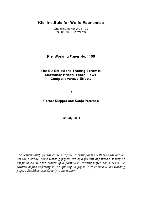 The EU Emissions Trading Scheme - Allowance Prices, Trade Flows, Competitiveness Effects