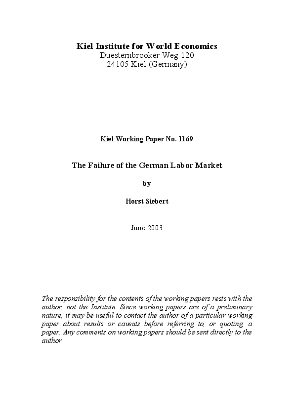 The paper analyzes why Germany experiences the high and sticky unemployment. It looks at wage policy and proposes a new approach to measure productivity growth when unemployment increases. It studies the position of trade unions and the institutional set-up of the labor market. It looks at the role of the reservation wage for the lower segment of the labor market and discusses the impact of contributions to social security on the demand for labor.