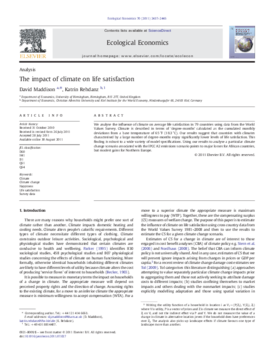 We analyse the influence of climate on average life satisfaction in 79 countries using data from the World Values Survey. Climate is described in terms of ‘degree-months’ calculated as the cumulated monthly deviations from a base temperature of 65 °F (18.3 °C). Our results suggest that countries with climates characterised by a large number of degree-months enjoy significantly lower levels of life satisfaction. This finding is robust to a wide variety of model specifications. Using our results to analyse a particular climate change scenario associated with the IPCC A2 emissions scenario points to major losses for African countries, but modest gains for Northern Europe.