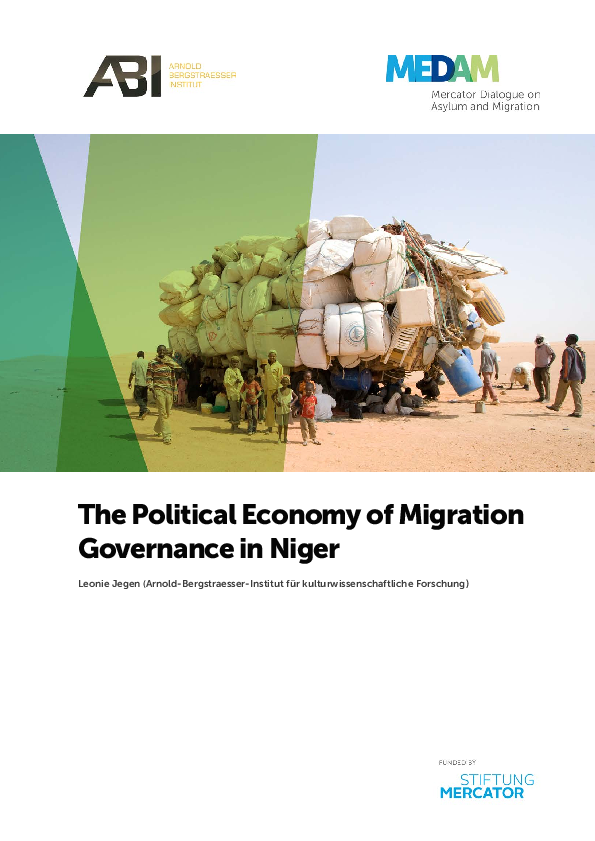 This report analyses the political economy of migration governance in Niger. The research follows a holistic understanding of migration governance considering irregular migration governance, forced migration governance, as well as governance of emigration (diaspora) and immigration. Each governance type is analysed on three levels—governance, political stakes and societal discourse.