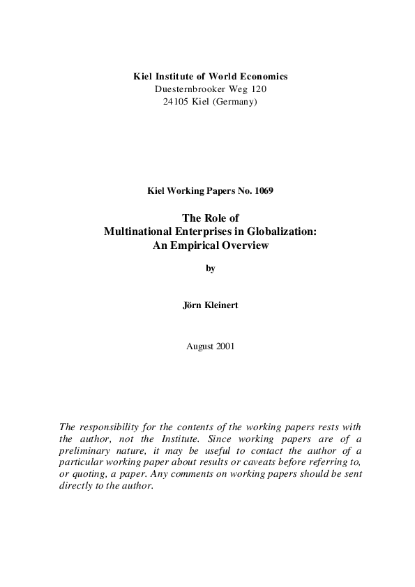The Role of Multinational Enterprises in Globalization: An Empirical Overview