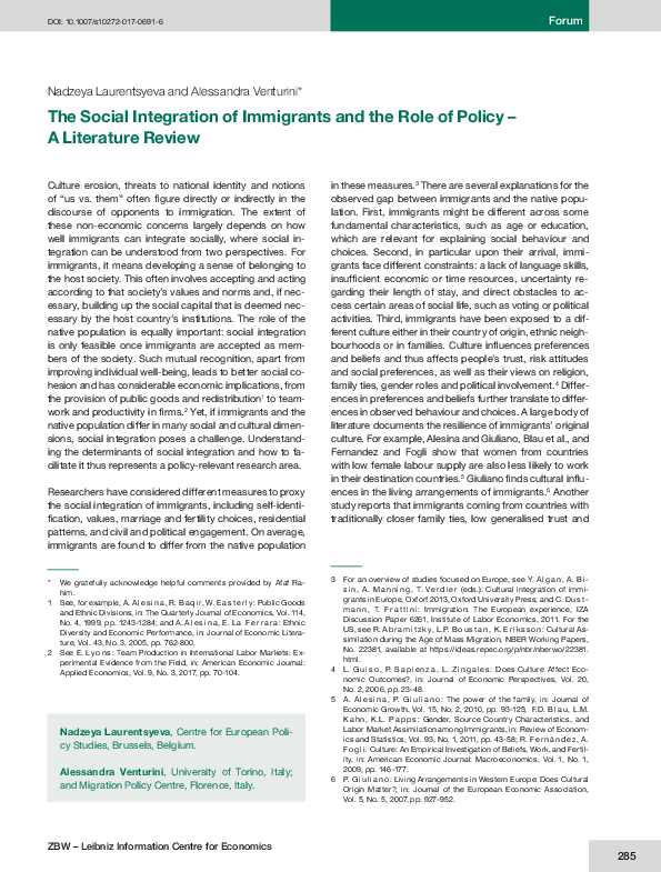The Social Integration of Immigrants and the Role of Policy – A Literature Review