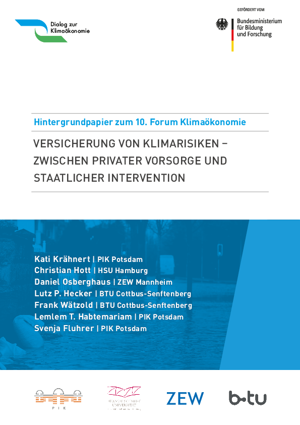 In diesem Hintergrundpapier wird der Stand der Literatur und der Debatten zum Thema Versicherung gegen Extremwetterereignisse zusammengetragen. Versicherungen können die wirtschaftlichen Folgen von Extremwetterereignissen für Haushalte und Unternehmen abmildern. Doch trotz der Vorteile solcher Versicherungen ist die Nachfrage durch Haushalte und Unternehmen, insbesondere im Globalen Süden, relativ gering. Anhand der zwei wesentlichen Versicherungstypen – Schadenversicherungen und indexbasierte Versicherungen – werden die Potentiale und Grenzen von Versicherungslösungen bei der Anpassung an den Klimawandel aufgezeigt. Der Fokus wird dabei auf konkrete und aktuelle Versicherungsbespiele gelegt, wodurch Gründe für die teilweise geringe Nachfrage nach den beiden Versicherungslösungen identifiziert werden können. Zudem wird anschaulich, welche Verteilungswirkungen Versicherungen gegen Extremwetterereignisse haben können und was eine sinnvolle Rolle des Staates bei beiden Versicherungstypen sein kann.