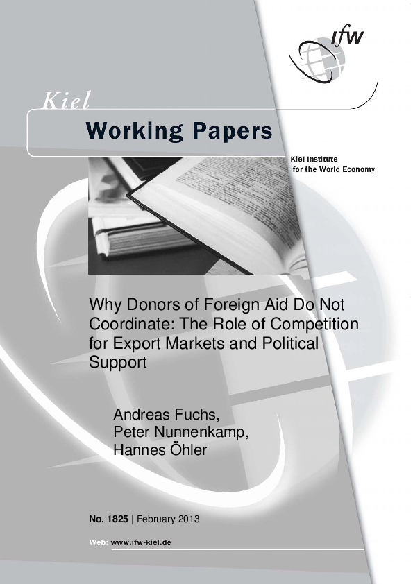Development assistance has been criticized for a lack of coordination between aid donors. This paper argues that competition for export markets and political support prevents donor countries from closer coordination of aid activities. To test these hypotheses, we perform logit and fractional logit estimations for a large sample of recipient countries and aid activities since the early 1970s. Our empirical results reveal that export competition between donors is a major impediment to aid coordination. Tough less conclusive, we also find some evidence that donors’ competition over political support prevents them from coordinating aid activities more closely.