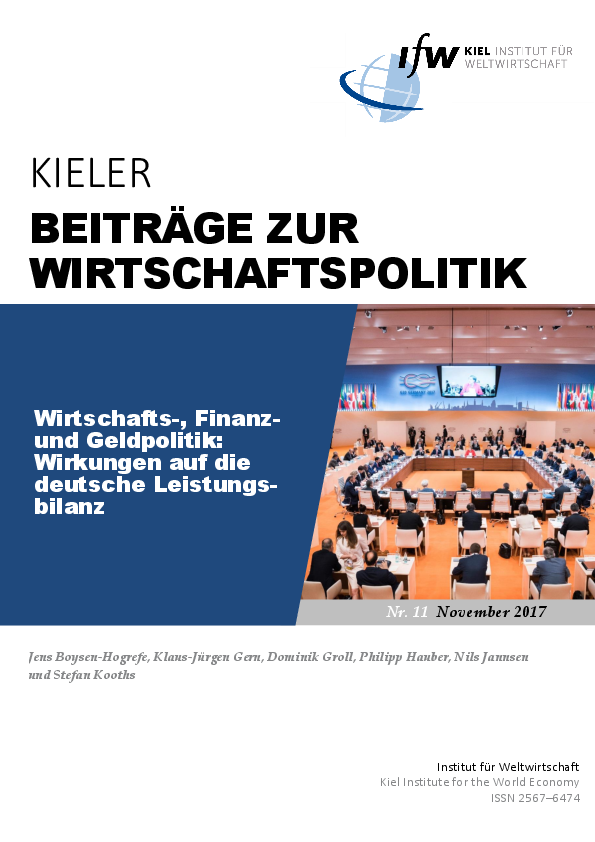 Der international häufig kritisierte deutsche Leistungsbilanzüberschuss bleibt auf absehbare Zeit sehr hoch. Die Autoren sehen für die deutsche Politik kaum Möglichkeiten, einen Abbau des Überschusses in die Wege zu leiten. Einzelne Maßnahmen, die Deutschlands Leistungsbilanzsaldo reduzieren würden, können aufgrund von politischen oder technischen Hemmnissen kaum im nötigen Umfang durchgeführt werden.