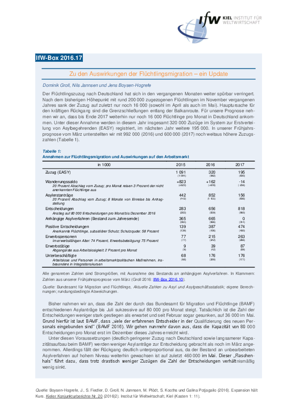 Zu den Auswirkungen der Flüchtlingsmigration - ein Update