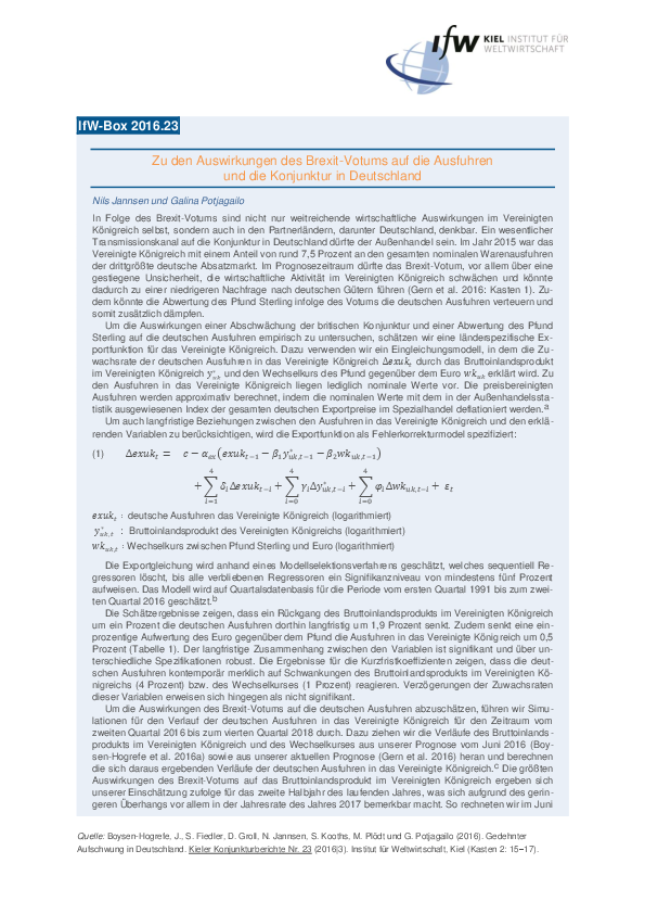 Zu den Auswirkungen des Brexit-Votums auf die Ausfuhren und die Konjunktur in Deutschland