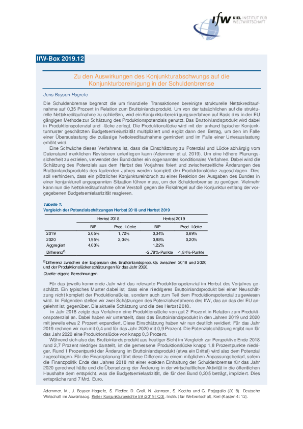 Zu den Auswirkungen des Konjunkturabschwungs auf die Konjunkturbereinigung in der Schuldenbremse