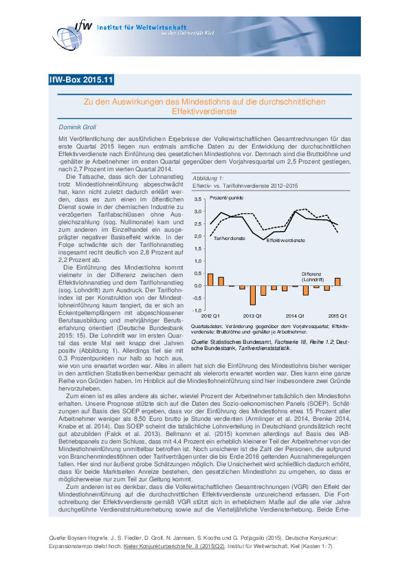 Zu den Auswirkungen des Mindestlohns auf die durchschnittlichen Effektivverdienste