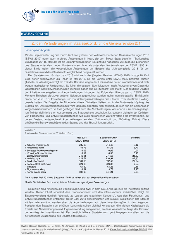 Zu den Veränderungen im Staatssektor durch die Generalrevision 2014