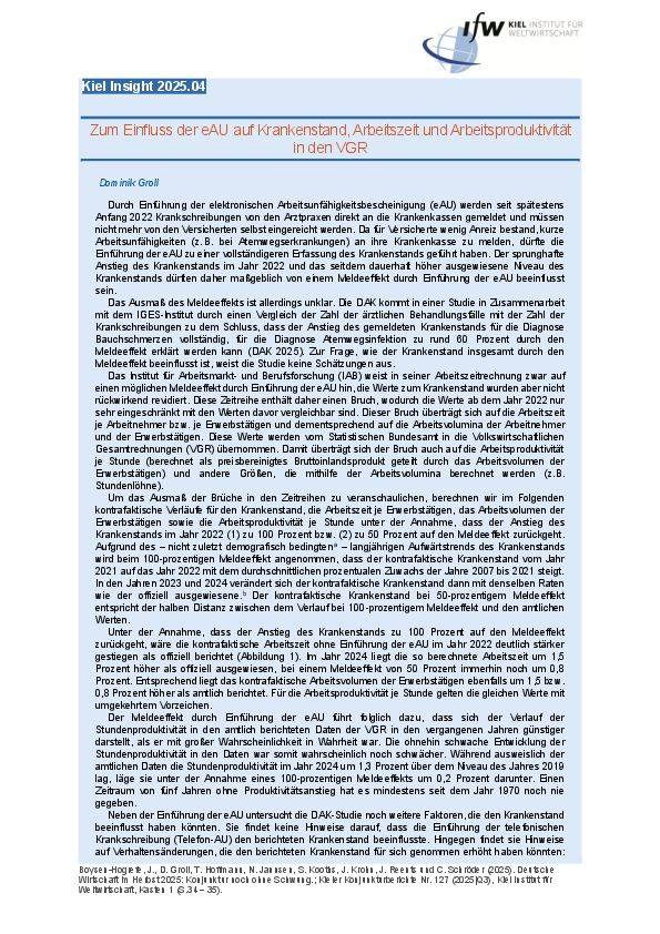 Zum Einfluss der eAU auf Krankenstand, Arbeitszeit und Arbeitsproduktivität in den VGR