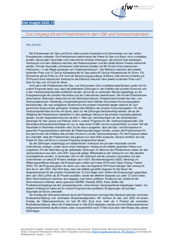 Zum Umgang mit den Preisbremsen in den VGR und Verbraucherpreisen