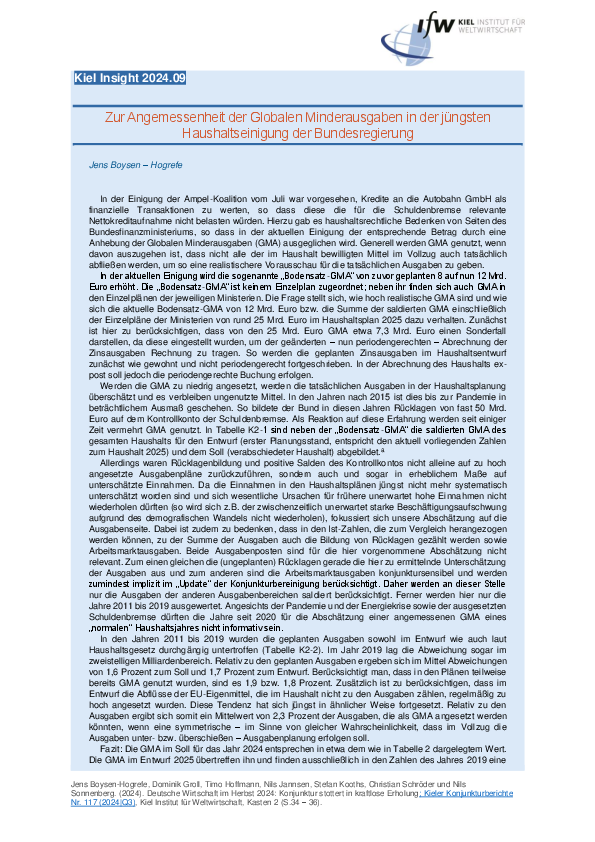 Zur Angemessenheit der Globalen Minderausgaben in der jüngsten Haushaltseinigung der Bundesregierung