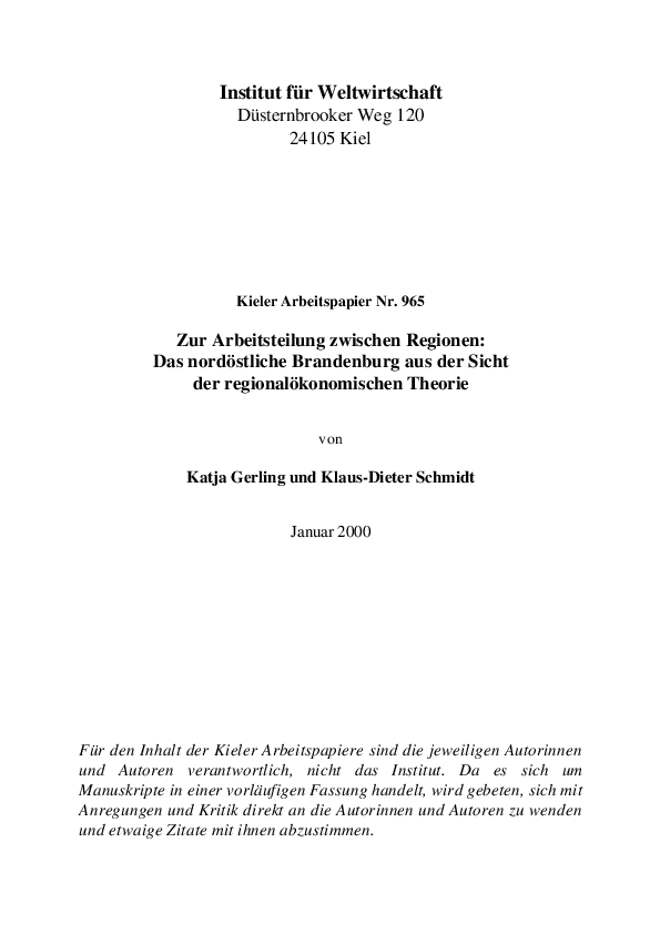 Zur Arbeitsteilung zwischen Regionen: Das nordöstliche Brandenburg aus der Sicht der regionalökonomischen Theorie