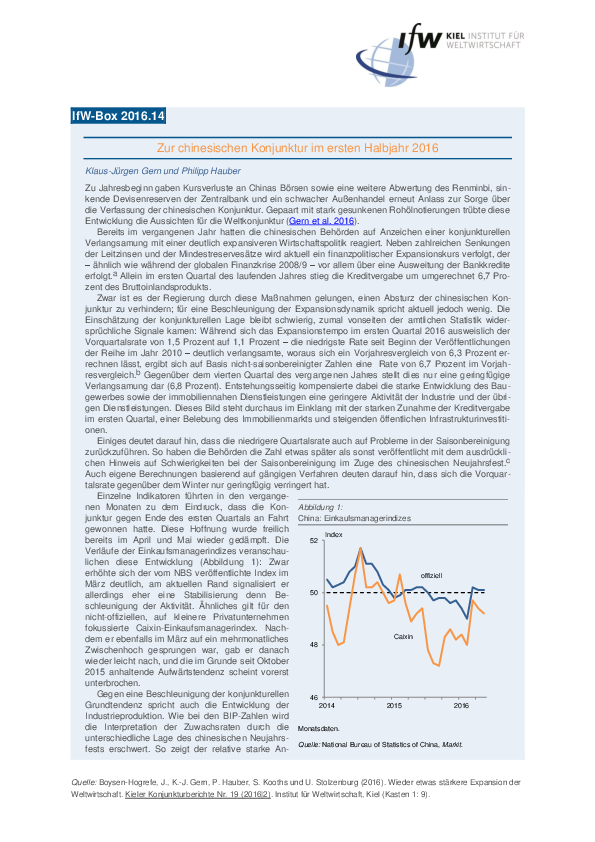 Zu Jahresbeginn gaben Kursverluste an Chinas Börsen sowie eine weitere Abwertung des Renminbi, sinkende Devisenreserven der Zentralbank und ein schwacher Außenhandel erneut Anlass zur Sorge über die Verfassung der chinesischen Konjunktur. Gepaart mit stark gesunkenen Rohölnotierungen trübte diese Entwicklung die Aussichten für die Weltkonjunktur.
