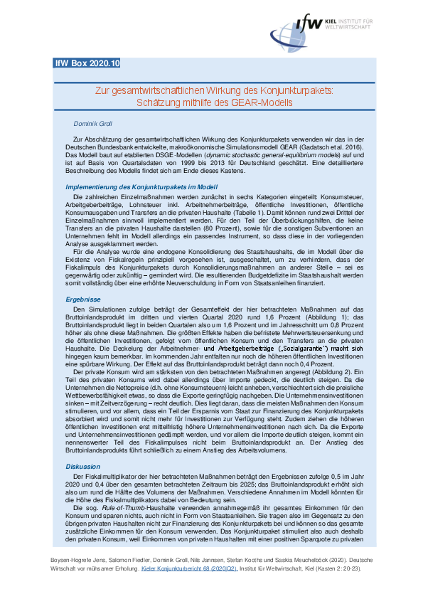 Zur gesamtwirtschaftlichen Wirkung des Konjunkturpakets: Schätzung mithilfe des GEAR-Modells