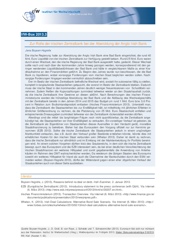 Zur Rolle der irischen Zentralbank bei der Abwicklung der Anglo Irish Bank