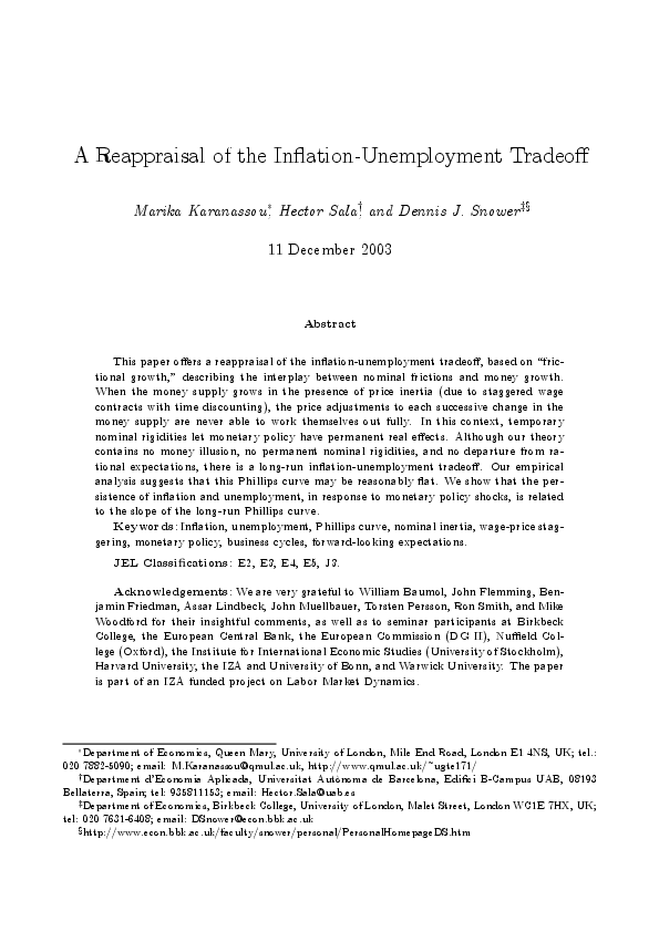 A Reappraisal of the Inflation-Unemployment Tradeoff