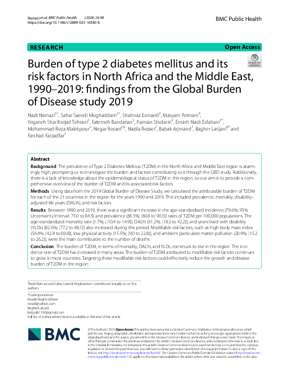 Burden of Type 2 Diabetes Mellitus and Its Risk Factors in North Africa and The Middle East, 1990–2019: Findings from the Global Burden of Disease Study 2019