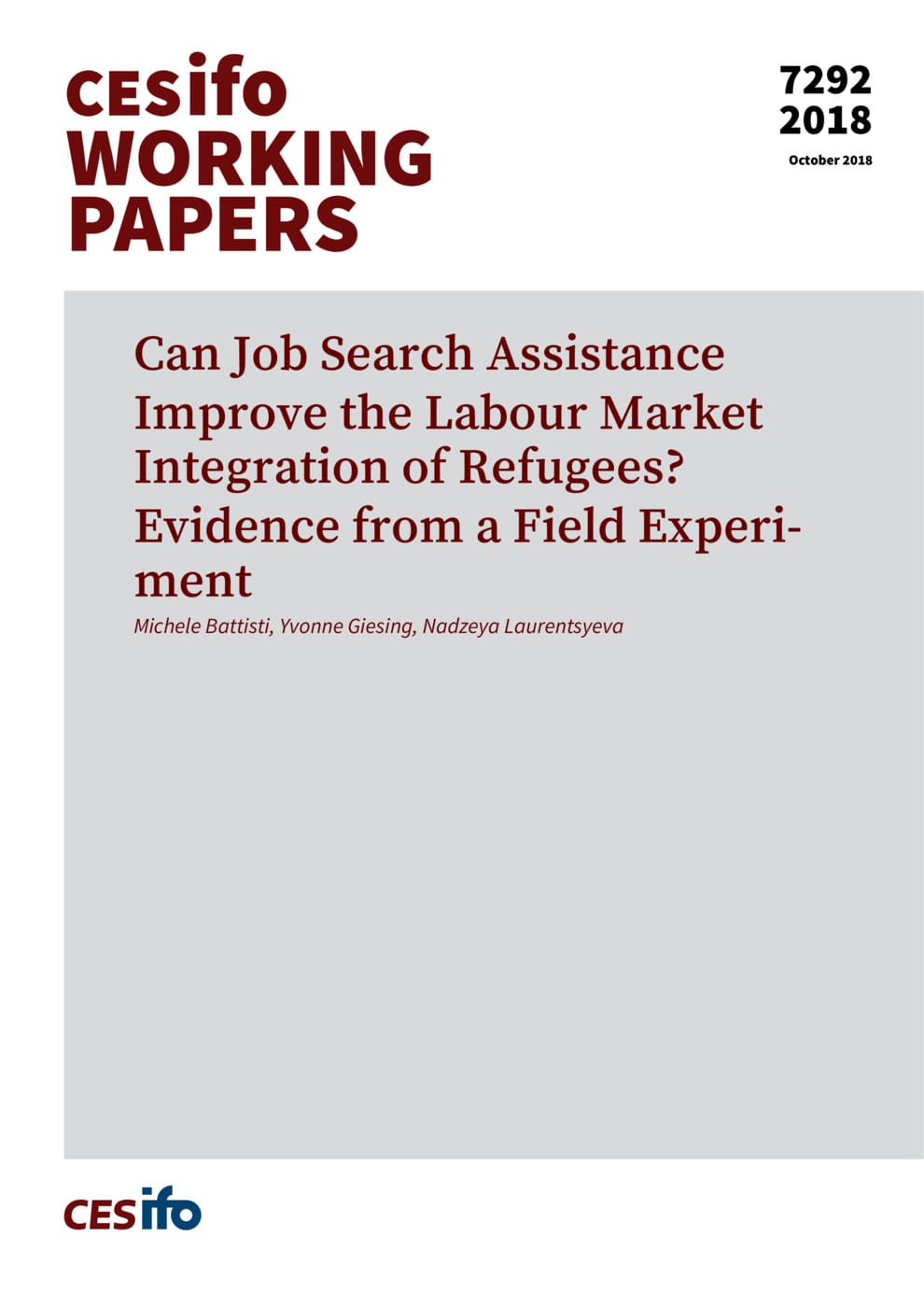 CESifo Working Paper, No. 7292
