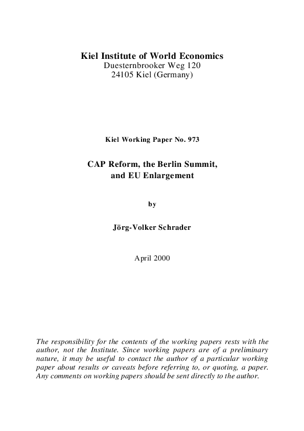 The paper discusses the decisions on the CAP in the context of the Berlin summit. In a rather broad perspective the agricultural sectoral and related objectives are analyzed for their consistency and compatability with higher ranking societal objectives. The policies' allocational and distributional consequences are assessed in a qualitative manner by comparing them with a hypothetical first-best policy. The analysis focusses on the distortions in land allocation between agriculture, forestry and environmental purposes as well as on distributional consequences, taking into account the envisaged eastern enlargement. Among the consequences are excessive budget outlays and high economic rents for landowners, who are increasingly no active farmers themselves. Finally, problems of implementing a liberal CAP reform are discussed.
