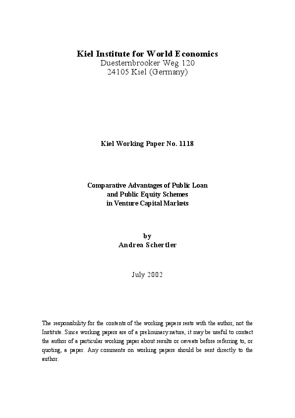 Comparative Advantages of Public Loan and Public Equity Schemes in Venture Capital Markets