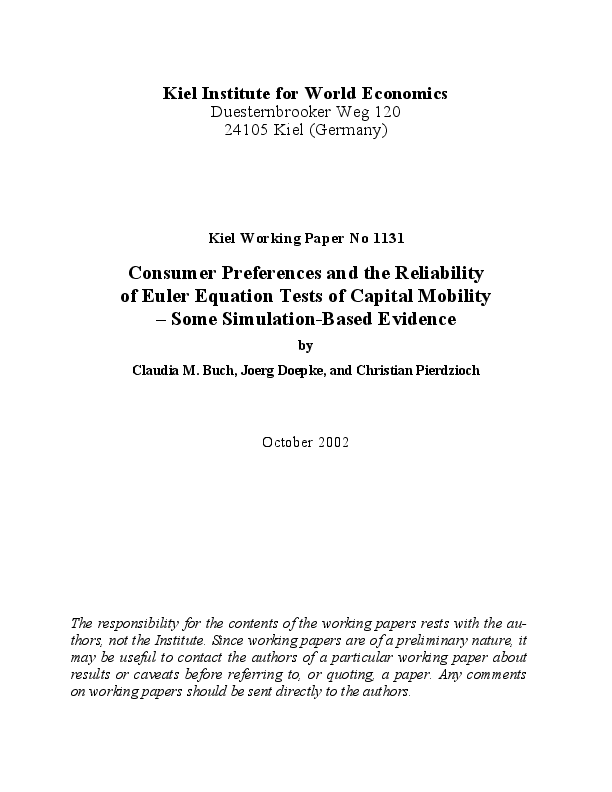 Consumer Preferences and the Reliability of Euler Equation Tests of Capital Mobility - Some Simulation-Based Evidence